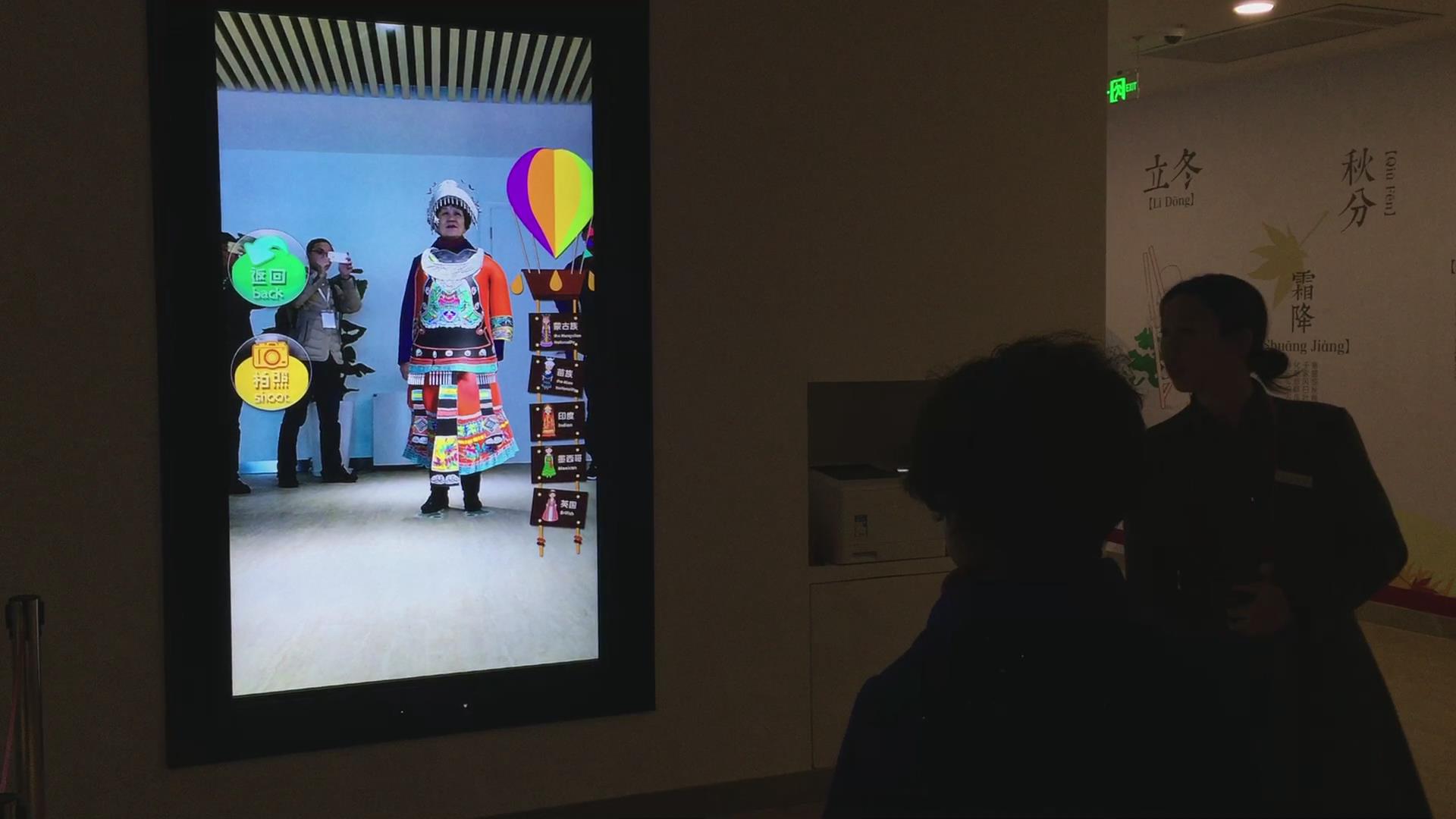 大屏虛擬換衣包含大屏顯示器,平板終端以及攝像機三塊構成通常作為鏡子使用的大顯示器上,客戶可根據自己喜歡的樣式點擊想要的衣服,然后利用擴增現實技術把衣服穿在身上的效果顯示出來。而此時,在另一頭的電視屏幕上,會出現你親手搭配的即時畫面,所選單品的信息也會自動顯示在屏幕左下角。如若不滿意,可Restart重新選擇單品更換搭配。