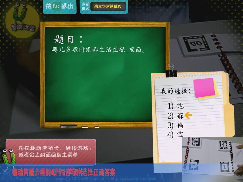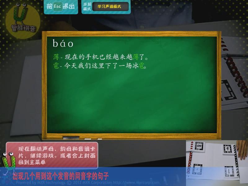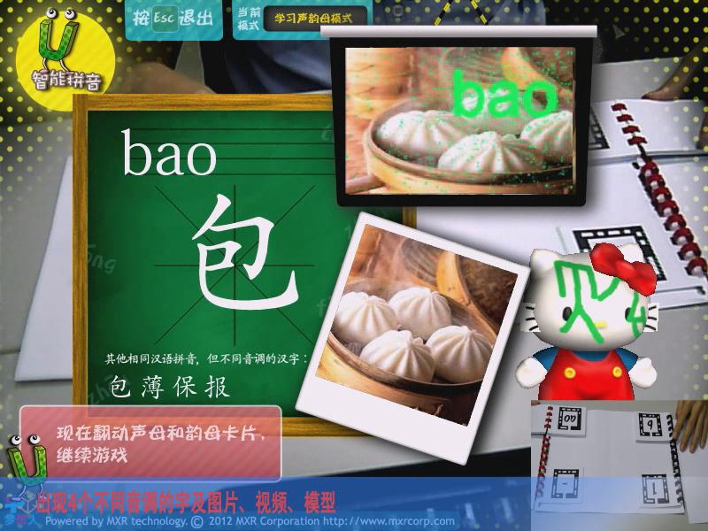 通過AR游戲的形式,讓參與者能夠學習拼音,主要分為靴子聲韻母、聲調、同音字測試、綜合測試四大模式,讓學習拼音變得更加有趣。