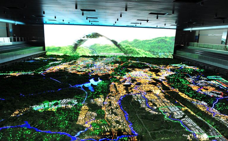 在空間、信息和觸控三屏的聯(lián)動下的沙盤。由空間屏的三維場景,準(zhǔn)確的把現(xiàn)實(shí)世界里的所有展現(xiàn)出來,例如可以任意的查詢地理信息、任意的去調(diào)整角度進(jìn)行瀏覽、根據(jù)需要來添加備注等。